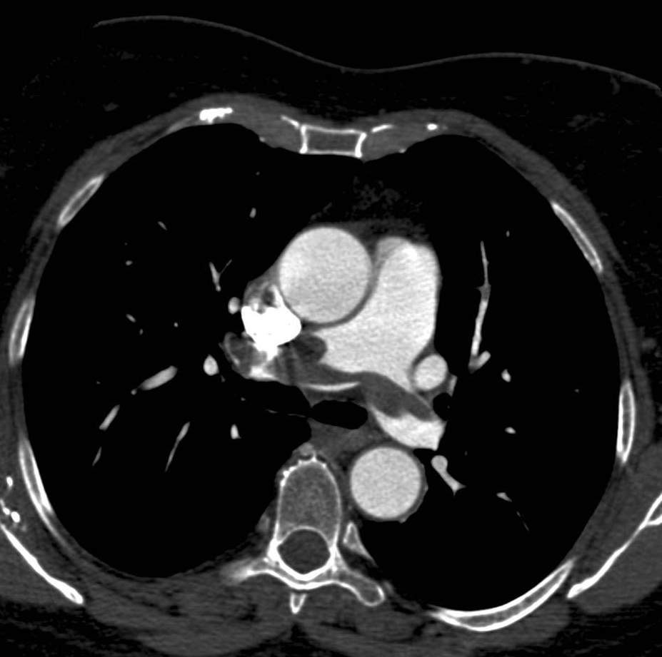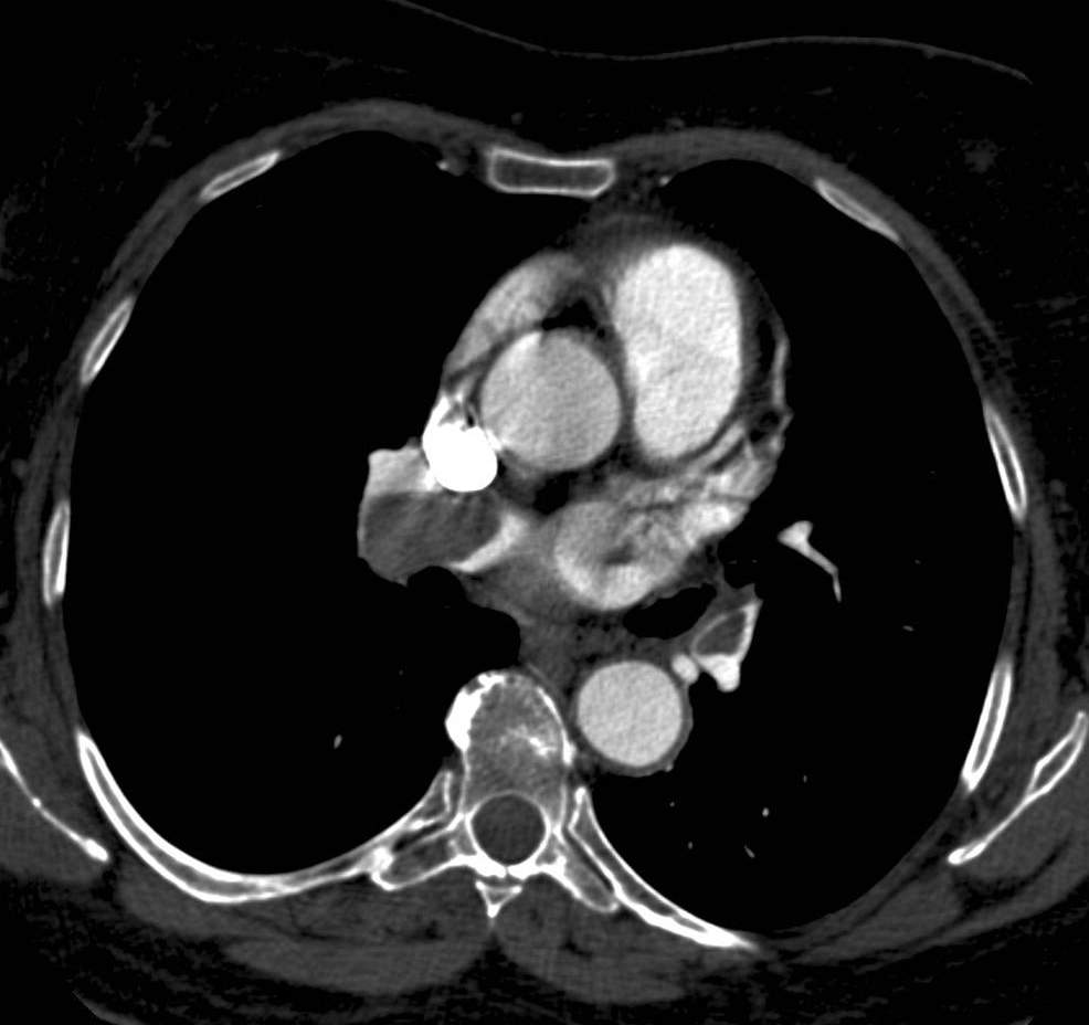 Modern multidetector CT with ECG gating (which eliminates motion artifact) can give a precise image of the anatomy and has a high diagnostic value in respect of the lungs and the main mediastinal vessels but provides limited functional information.