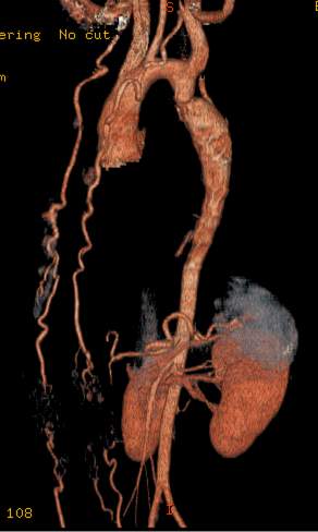 In adulthood secondary involvement of the large arteries (e.g.: glomus tumor of the carotid bifurcation) occur more often, which also requires a precise vascular depiction in the planning of complex oncologic surgeries (penetrating renal tumor to vena cava). All these are best represented with CTA examination.