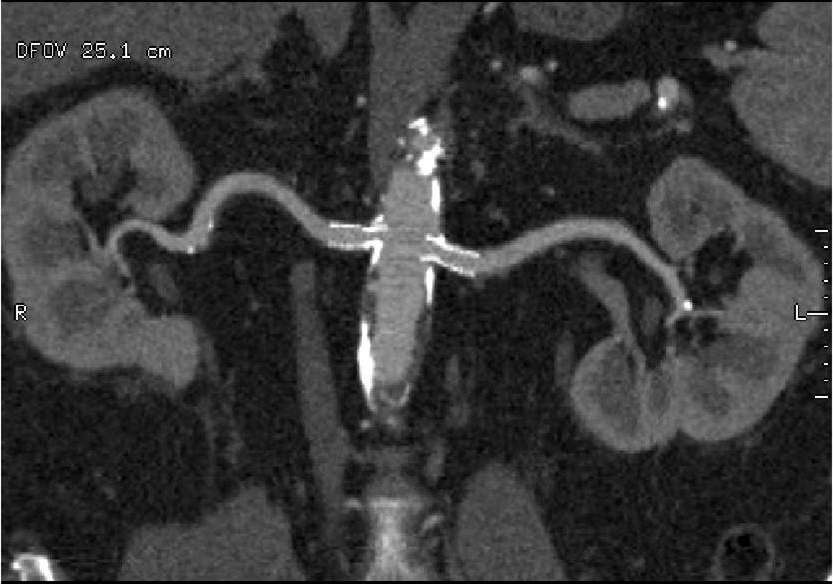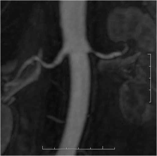 CTA and MRA are both capable of diagnosing renal artery stenosis. Both methods can identify anatomic variations, atherosclerotic lesions at the origin of the vessels or at distal segments on the artery. These techniques not only show the contour irregularities and the narrowed lumen, but they are also able to reveal the secondary parenchymal lesion of the kidney. However, in patients with decreased renal function, both types of contrast materials should be avoided or applied only with care.