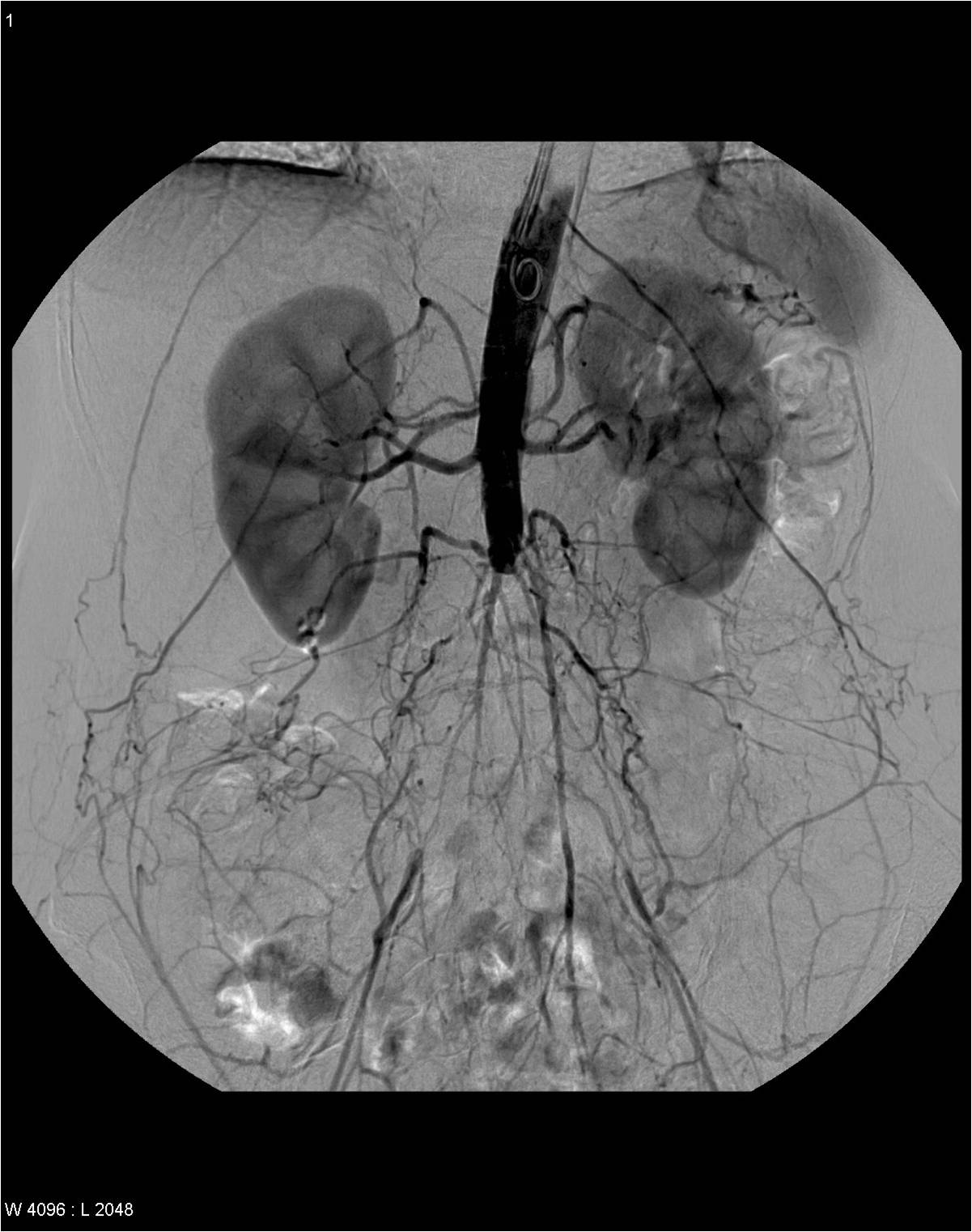 Usual imaging diagnostic approach is by catheter angiography, DSA technique if possible. This is carried out by repeated injections of smaller quantities of dye, which eventually can demonstrate the whole arterial system and the arterial outflow (on the late phase) even at territories with decreased flow speed vascularization.