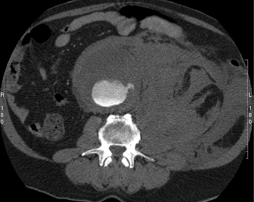 Large vessel dilatations can cause signs of compression, depending on its localization. The circulation slows down within the expanded vessel and a consequent thrombogenic process occurs along the luminal wall, often reaching such a high grade that the permeable lumen barely shows any dilatation. The thrombus can act as a source of distal embolization and can cause acute ischemic signs when reaching certain arterial territories. Finally, the most important complication of the progressively expanding aneurysm is rupture, which causes circulatory insufficiency and presents as a high mortality condition, leading to patient death within a few hours without an interventional procedure. The risk of rupture increases exponentially with the size of the diameter.