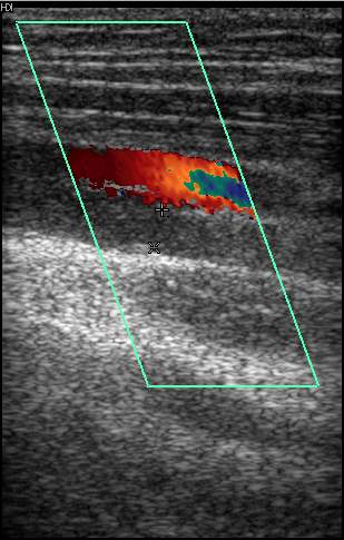 Deep vein thrombosis of the limb has chronic venous insufficiency, as a local complication and pulmonary embolism as a systemic complication. Without adequate therapy the thrombosis can spread along the venous wall in both ways leading to an increased segmental involvement that can further increase clinical symptoms. That is the reason why, in case of suspicion of a deep vein thrombosis, an imaging examination should be carried out, in order to prove the existence of thrombosis and to describe its extension. Thromboses affecting the limb and the pelvis, as well as the ones found on the upper extremities or on the neck, can all be effectively detected with US examination: the involved vascular branch will show an increased diameter, the lumen is filled with a hypoechoic mass that cannot be compressed with the transducer. The thrombosed segment does not show a Color Doppler signal or a Doppler pulse curve. In all cases, comparison with the healthy, contra lateral side can help with the evaluation, as long as one side is unaffected.