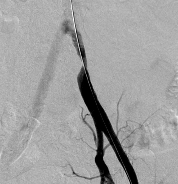 In acute thromboembolic diseases, vascular surgery is the most common treatment. In case of relative or absolute contraindications of vascular surgery, selective arterial lysis is an option. Most commonly, tissue plasminogen activator (tPA) is given in a bolus and then in an arterial infusion for 4-24 hours. To prevent further clot formation, heparin is also administered intraarterially. Control angiogramms during the lysis usually shows the underlying stenosis responsible for the occlusion, which can be treated by PTA or stenting in the same session.