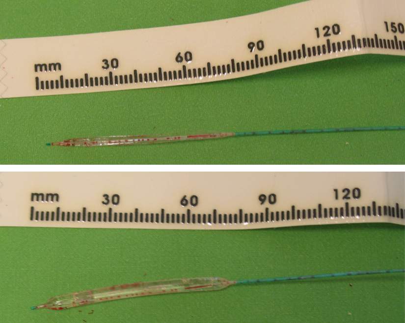 PTA can be done only if the targeted stenosis and/or occlusion can be negotiated with the guidewire. Therefore, manipulation with the guidewire is one of the most important and often difficult part of radiological interventions. Balloon-catheters have two channels, the inner, thicker channel for the guidewire, and the outer, thin channel for balloon inflation (using a mixture of saline and contrast medium on 6-20 atm pressure).