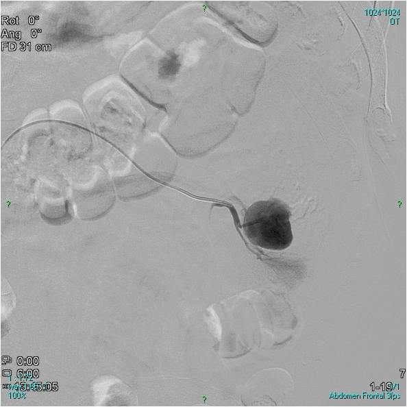 Embolisation provides intentional temporary or permanent closure of arterial branches by using occlusive materials. These include gelfoam (temporary effect); or metal coils, beads made of synthetic materials (e.g. PVA – polyvinylalcohol) (permanent effect), lipiodol and absolute alcohol (scleroembolic material); other special devices, e.g. Amplatzer occluder, may also be used, for example, as cardiac septal occluder. Embolisation can be used in any type of arterial bleeding (e.g. trauma, gastrointestinal, malignant tumor), vascular malformations, aneurysms, and malignant or benign tumors for curative, palliative or preoperative purpose. Potential complications of embolisations include non-target embolisation (embolic material reaches an arterial bed different from the one intended to be treated) which may result in negligible clinical consequences only but may also cause severe ischemia, infarction, necrosis, pain, paraplegia and a number of other serious complications. Therefore, complete and thorough planning of embolisation procedures are very important. Severe complications are fortunately rare.