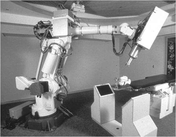 Cyberknife. Practically, it’s a combination of a linac and a robotic arm, the system being supported by imaging devices. The doubled frequency compared to standard linacs leads to the size reduction of resonating cavities and the waveguide.